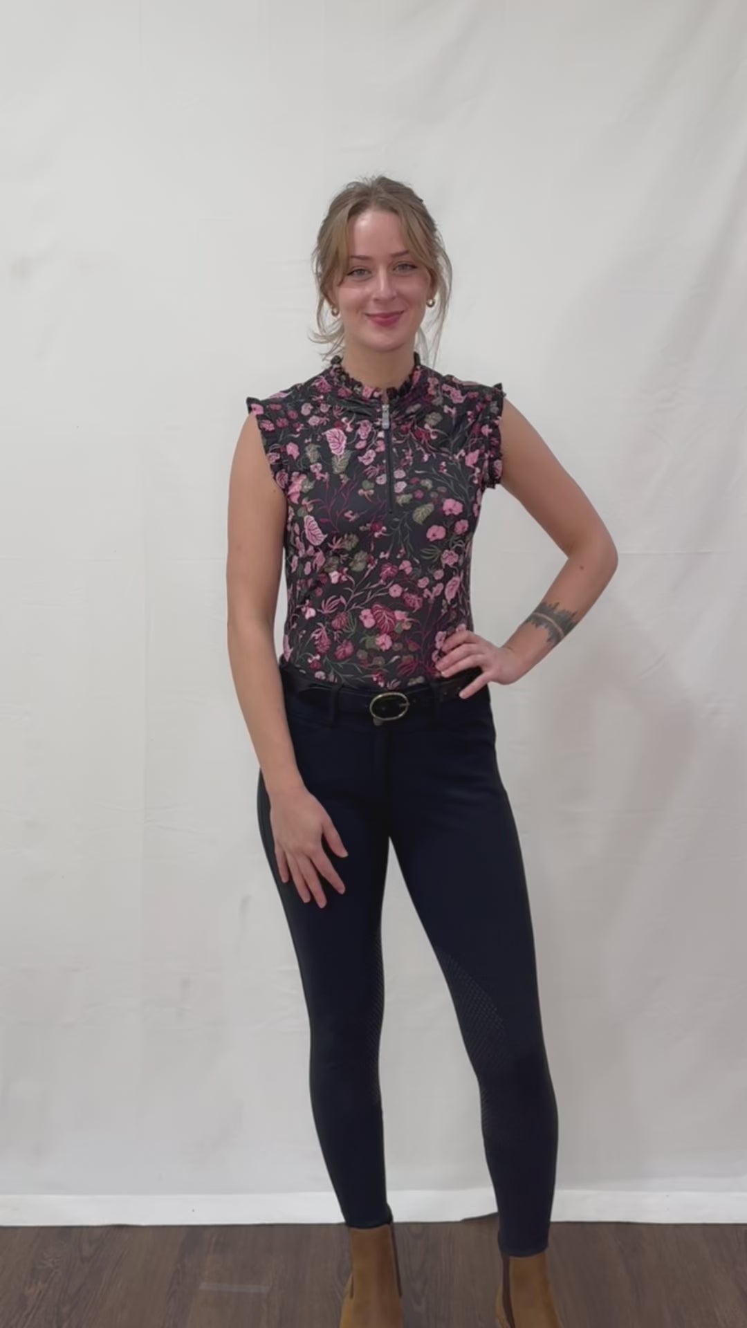 Kastel Black Modern Begonia Ruffle Tank 1/4 Zip Sun Shirt
