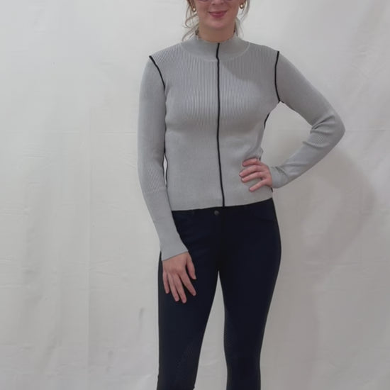 Kastel Dove Gray Ribbed Mock Neck Sweater with Black Piping