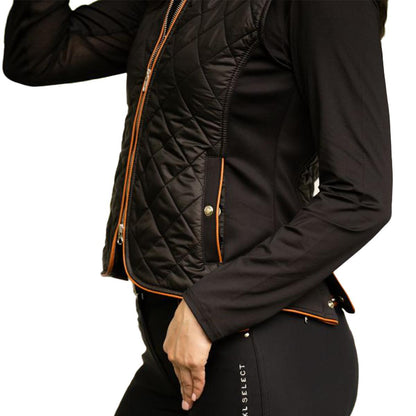 Elevate your style with the KL Select Taylor women’s riding vest. An ideal layer for multiple seasons, this essential piece combines modern design and elegance with practicality, making it a must-have for any wardrobe. The sleek, tailored fit accentuates your figure while allowing for freedom of movement – in and out of the saddle. The Taylor vest features diamond shape quilting, contrasting faux leather piping, and 4-way-stretch side panels.
