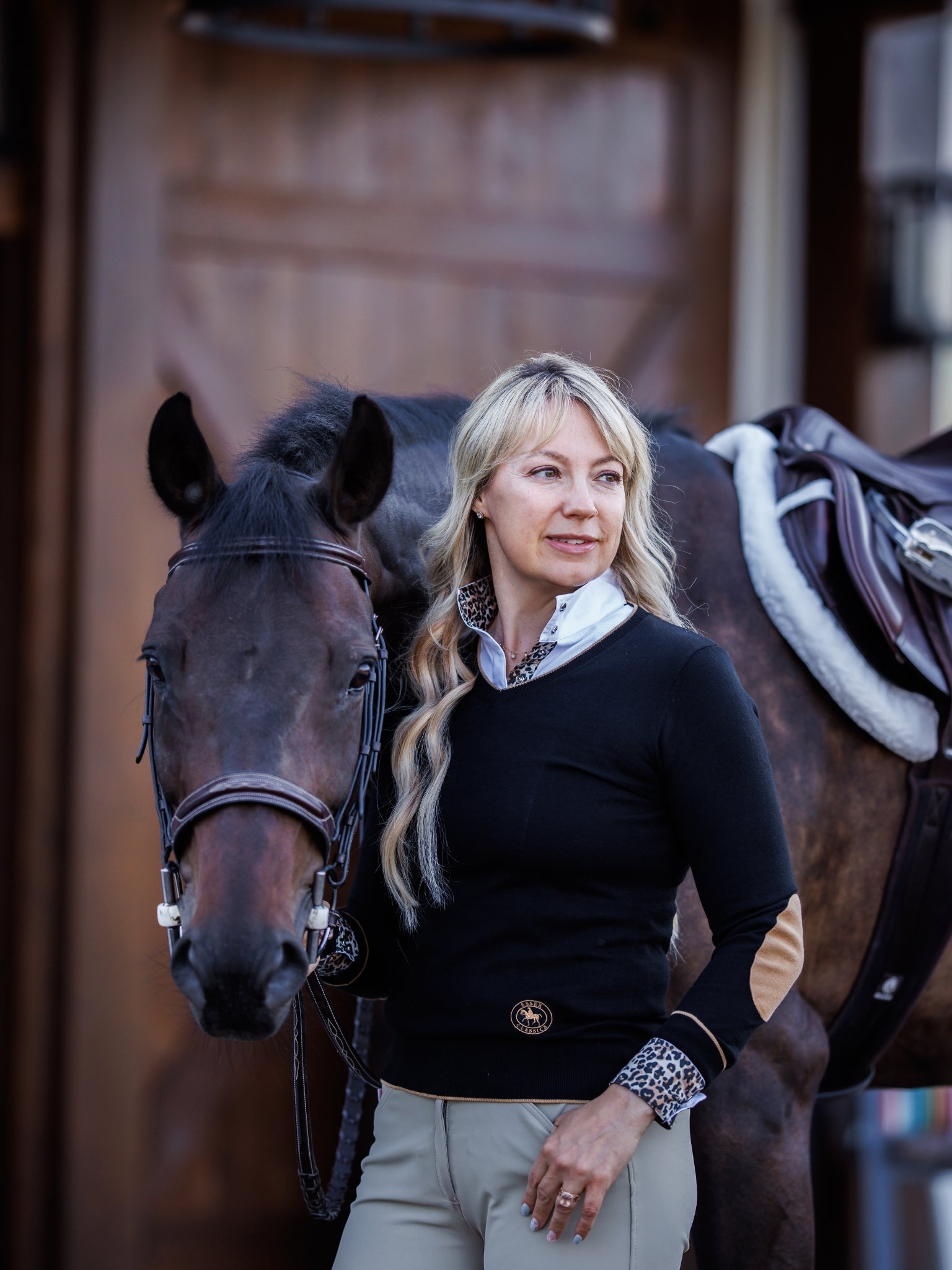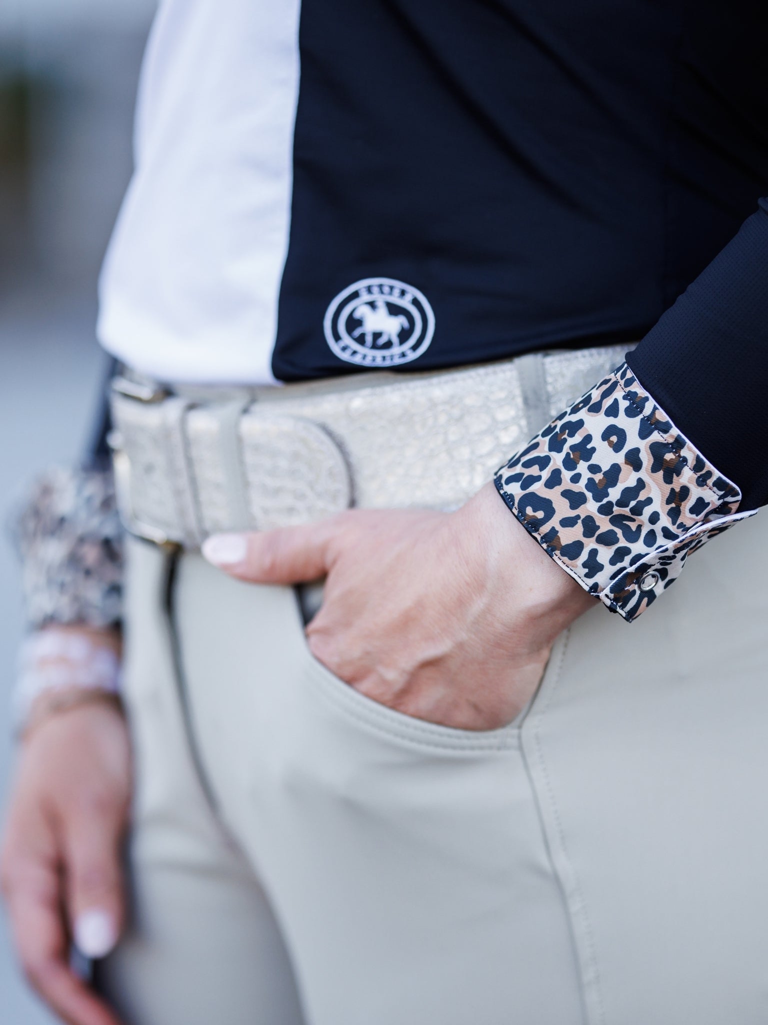 Essex Classics Ladies "Luna II" Black with Leopard Long Sleeve Performance Show Shirt