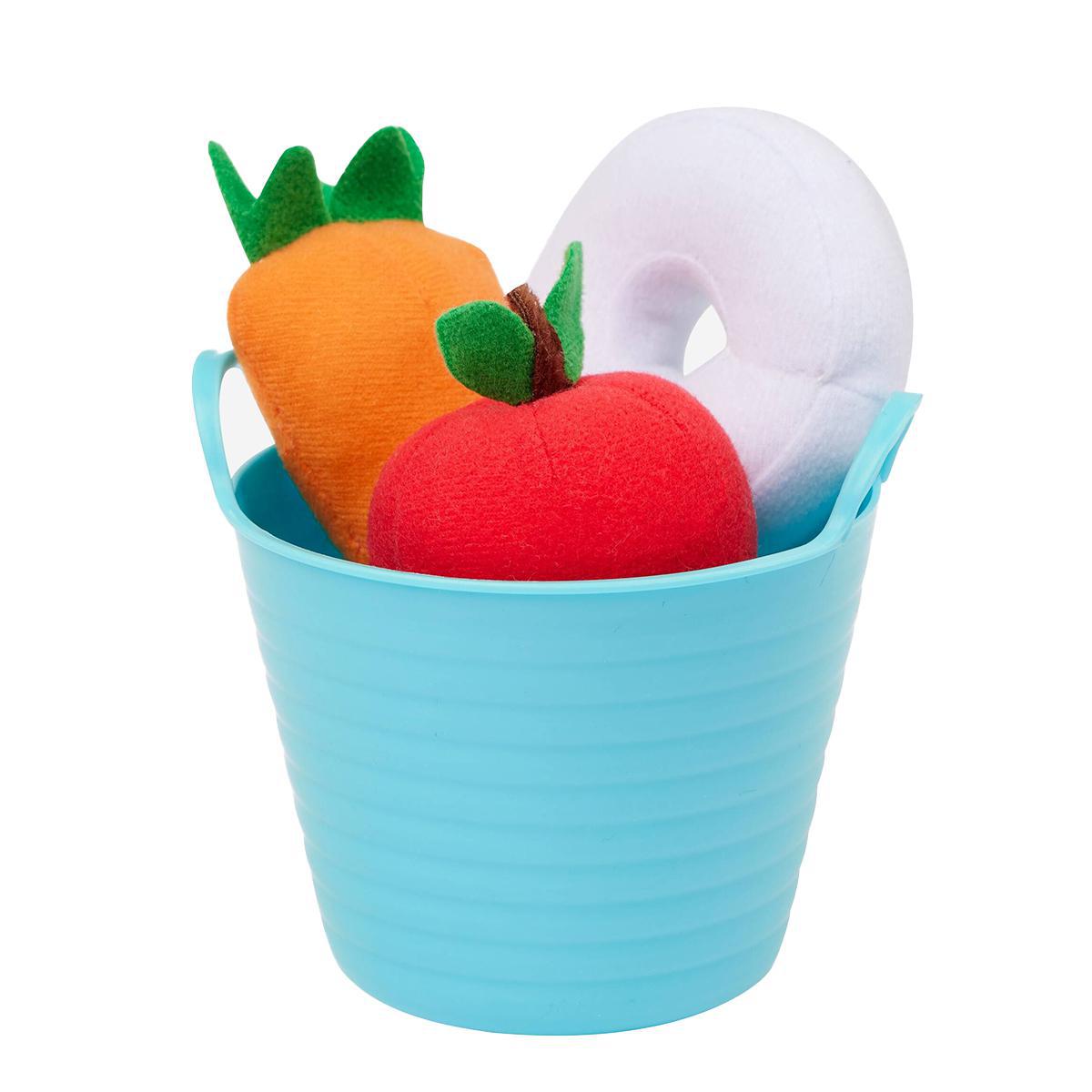 Why offer your Toy Pony just one treat when you could spoil them with a whole bucket of yummy rewards? Delicious goodies within this plastic treat bucket include a soft fabric carrot, apple, and mint, each with a hook and loop spot to attach to your Toy Pony's mouth. Crunch, munch, time for lunch!
