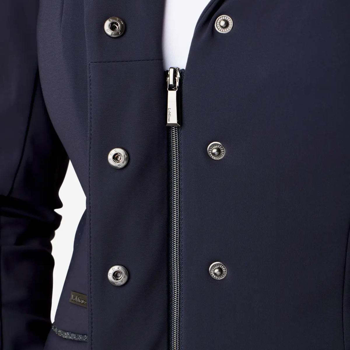 A subtle beaded trims on pocket edges and back belt panel add a touch of luxury sparkle and creates a flattering silhouette and stylish appearance. Fastened with a front zip and custom LeMieux press stud for stunning practicality, this Show Jacket is a must-have for all competition riders.- High Performance Fabric Technology