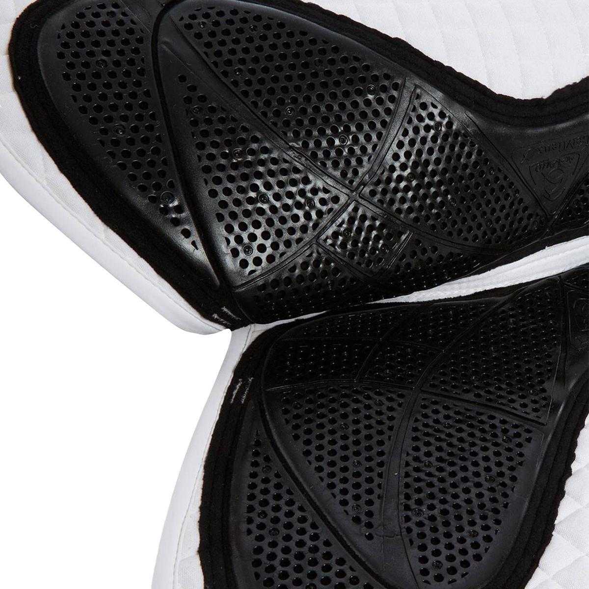 The Twin Sided X-Grip EJ square combines the stylish, iconic LeMieux cut with the new X-Grip silicone & bespoke Acavallo Gel mold to provide the maximum saddle stability, shock absorbency and grip of any saddle pad! The unique 3 layer design combines the X-Grip silicone top side, Blast foam core & Acavallo gel underside to create one low profile highly effective pad. The lower density memory foam under the X-Grip silicone aids saddles to bed down and stabilize whist the bespoke X-Grip Acavallo gel underside has the same low profile, non-slip credentials as all Acavallo products. This twin sided technology makes this the most elite product in the LeMieux stable.