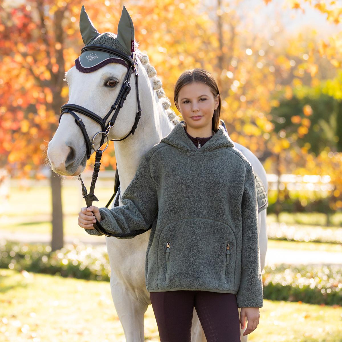 This sherpa fleece hoodie is a must for keeping Young Riders warm at the yard. Created in gorgeous seasonal colors, it's perfect for staying warm in mixy matchy style.