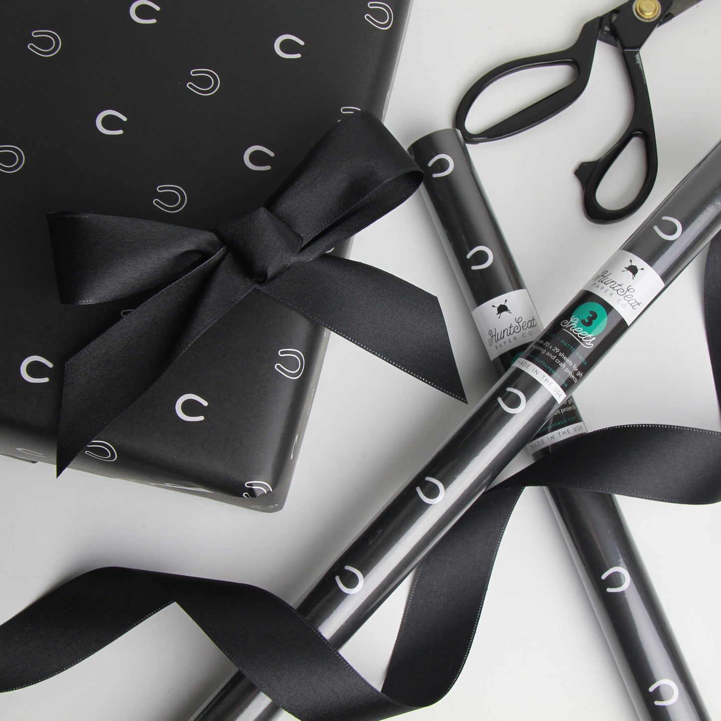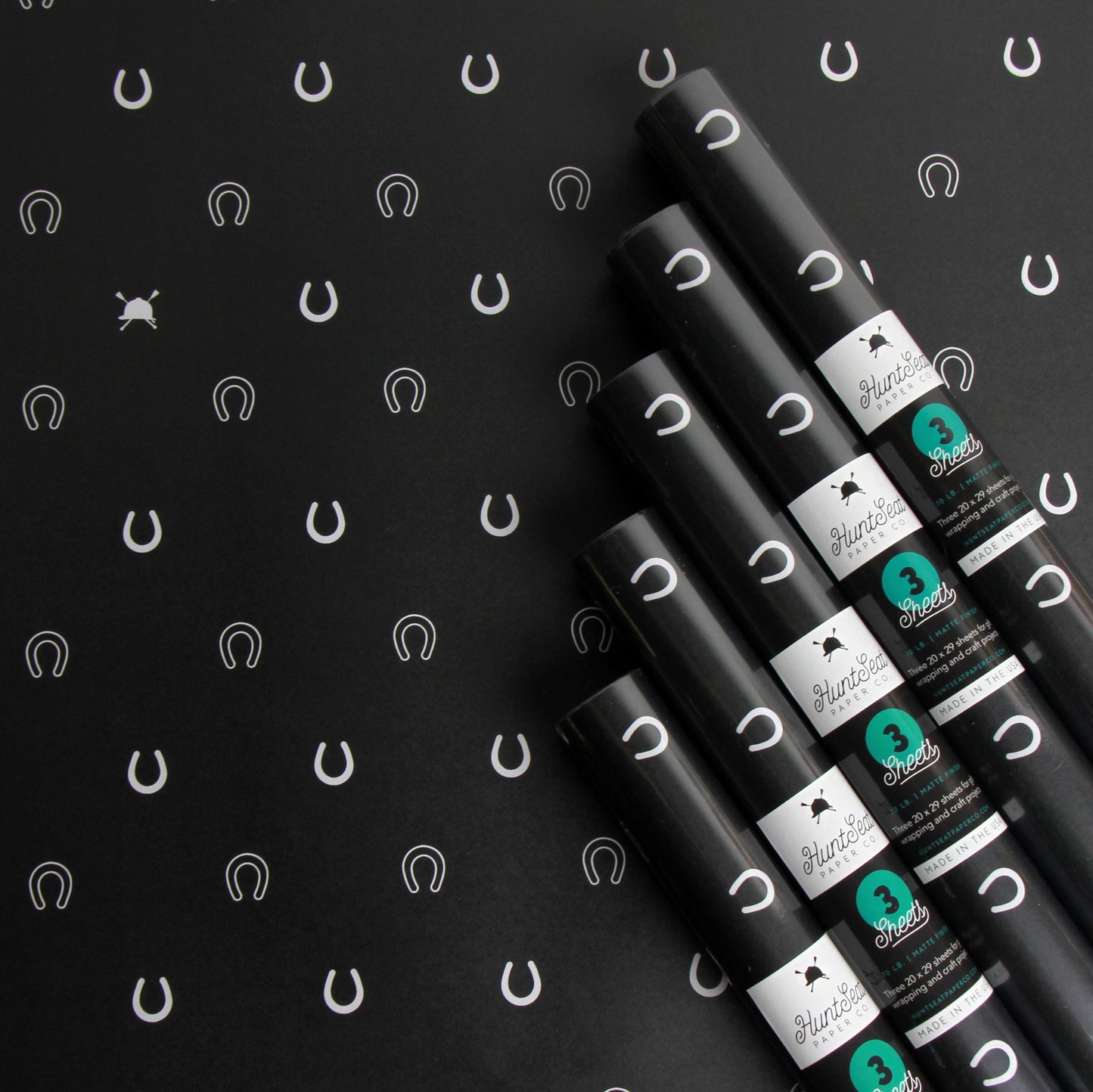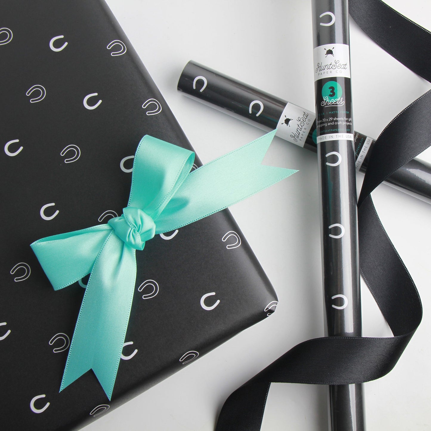Three 20 x 29 inch sheets of 70lb gift wrapping and craft paper, rolled in a cellophane tube with branded sticker.