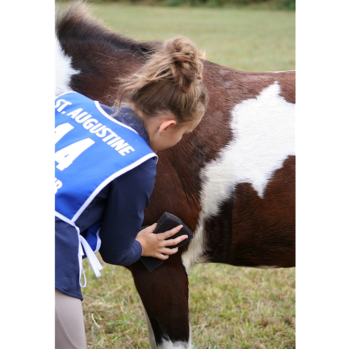 Not a sponge, or a curry comb, or a rub rag…it’s all three in one. Use it dry and it removes sweat marks and caked-on dirt. Use it wet and it gets to that deep and hard-to-reach dirt. It’s soft enough for faces and legs, and sturdy enough to use for baths in the wash stall. It gives a stimulating skin massage while providing gentle exfoliation; even the thinnest-skinned horses love it! Removes dog and cat hair like a champ. Also great for cleaning that caked-on grime from your nastiest tack.
