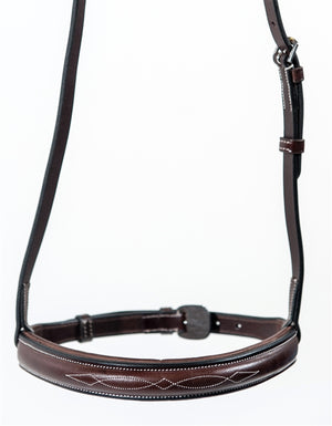 Designed to fit a medium to large pony, The Venice has all the details of The Florence Bridle. Made from Italian Leather, The Venice has a padded inlaid caveson, raised fancy stitched wider brow and noseband, and matching laced reins - all proportionately sized for your pony.