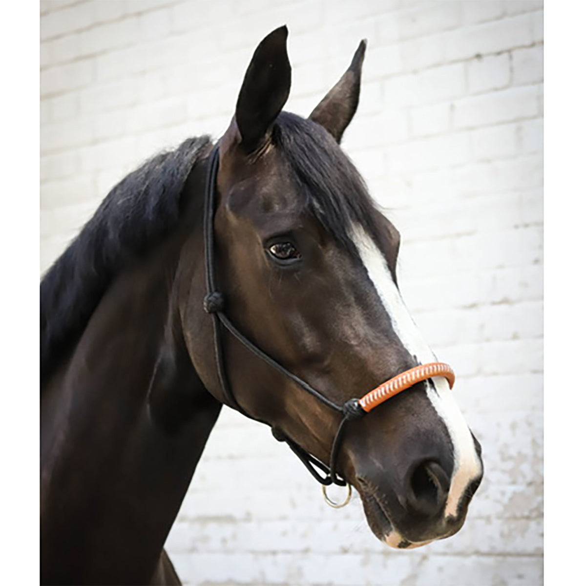 We love this halter because it is a great alternative to a chain lead rope. The leather nosepiece and strategically placed knots offer more control than a traditional halter.