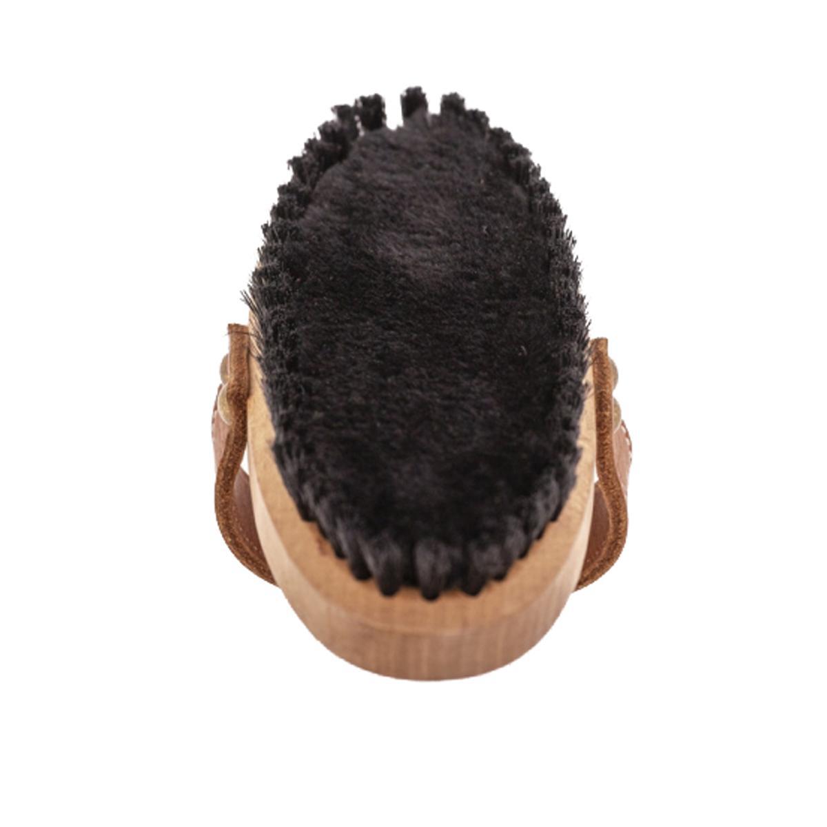 The Pénélope Extra Soft Brush is equipped with soft bristles on the outer oval with an even softer bristle on the inside. This brush is ideal for brushing sensitive areas of the horse, thus providing optimal comfort. On the underside, in the center, ultra-soft bristles allow for very gentle brushing. Its oval shape and leather handle make it particularly practical and ensure a good grip. Featuring a cognac leather handle with the Pénélope logo is embossed on it.