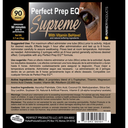 Similar to Extreme, Perfect Prep EQ™ Supreme is a quick-acting, targeted horse calming supplement formula with Vitamin B that creates an even greater calming effect.