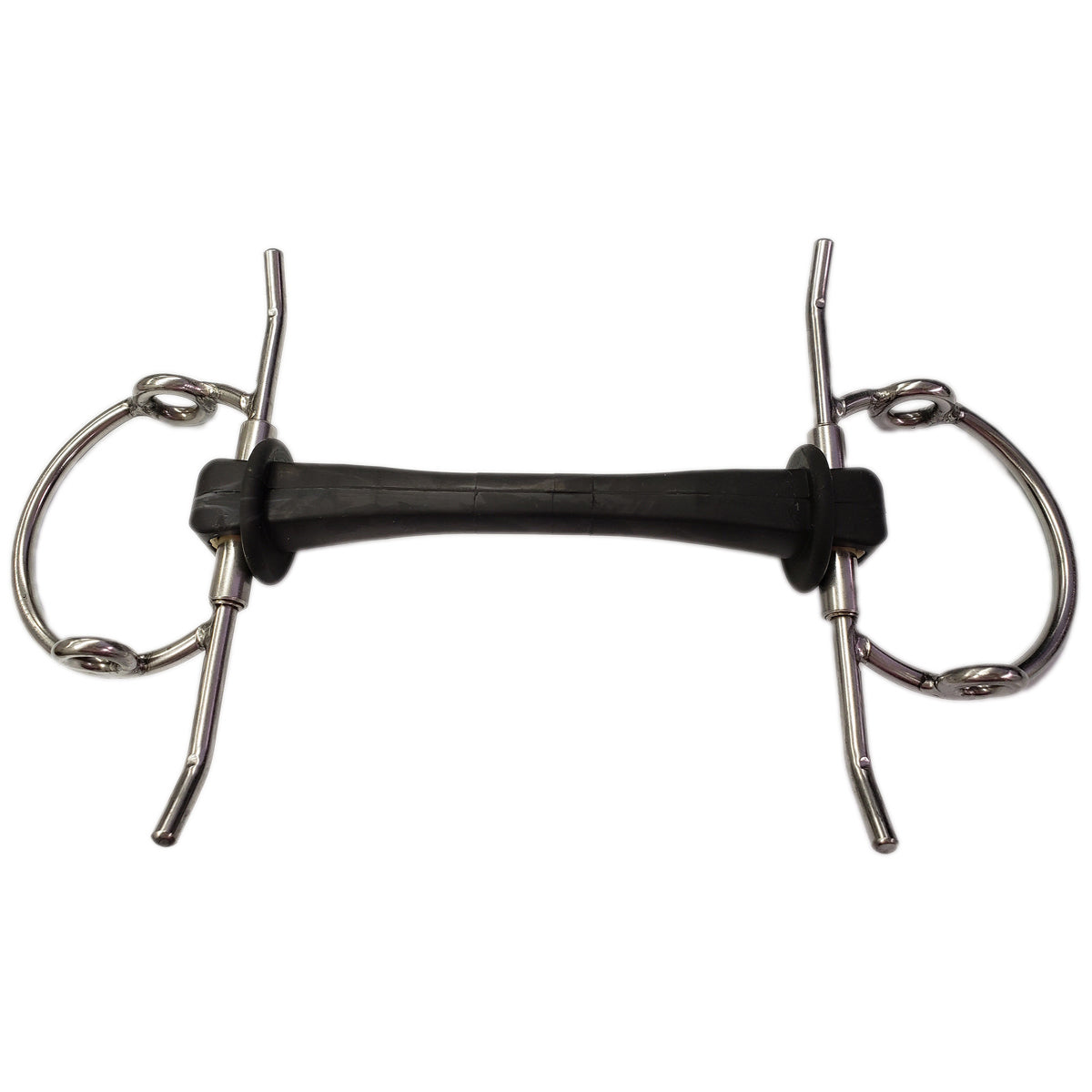 The gag bit is a bit whose side pieces have two bars. This shape creates more pressure on the horse's cheeks (even more than with a D-bit). This makes a horse easier to maneuver and a bit cannot be pulled through the mouth so easily. This makes the full cheek snaffle a fine bit to train young horses. A full cheek is stable and quiet in the mouth.