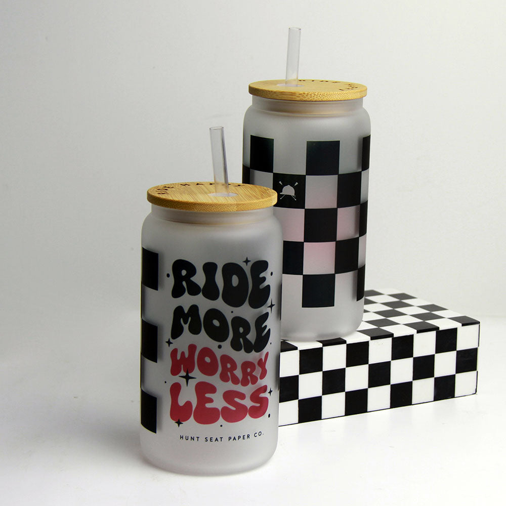 Ride More Worry Less Glass Tumbler with Bamboo Lid and Straw