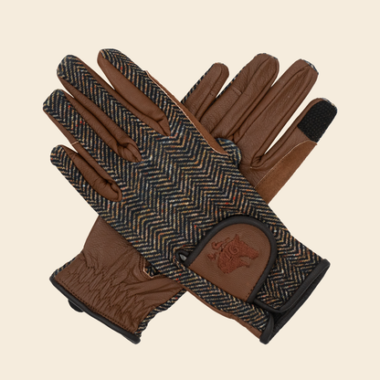 Sixteen Cypress Riding Gloves, Herringbone & Cognac