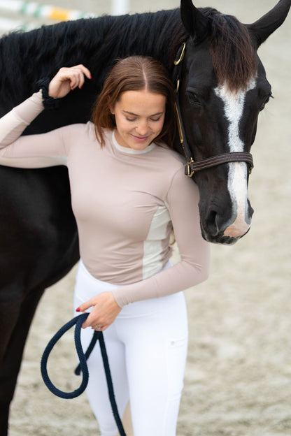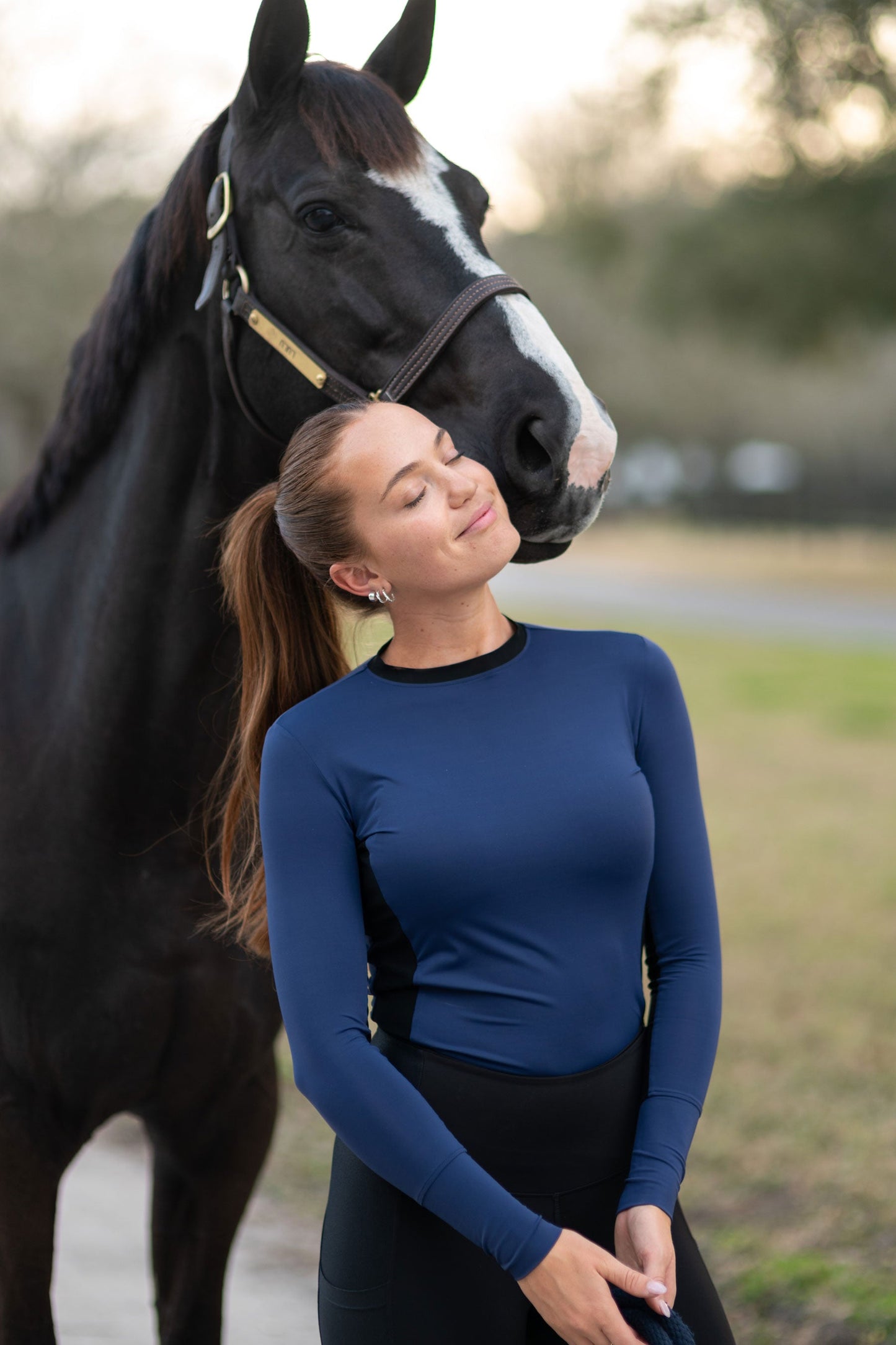 We love the features of this classic riding shirt! The classic vented long sleeves,