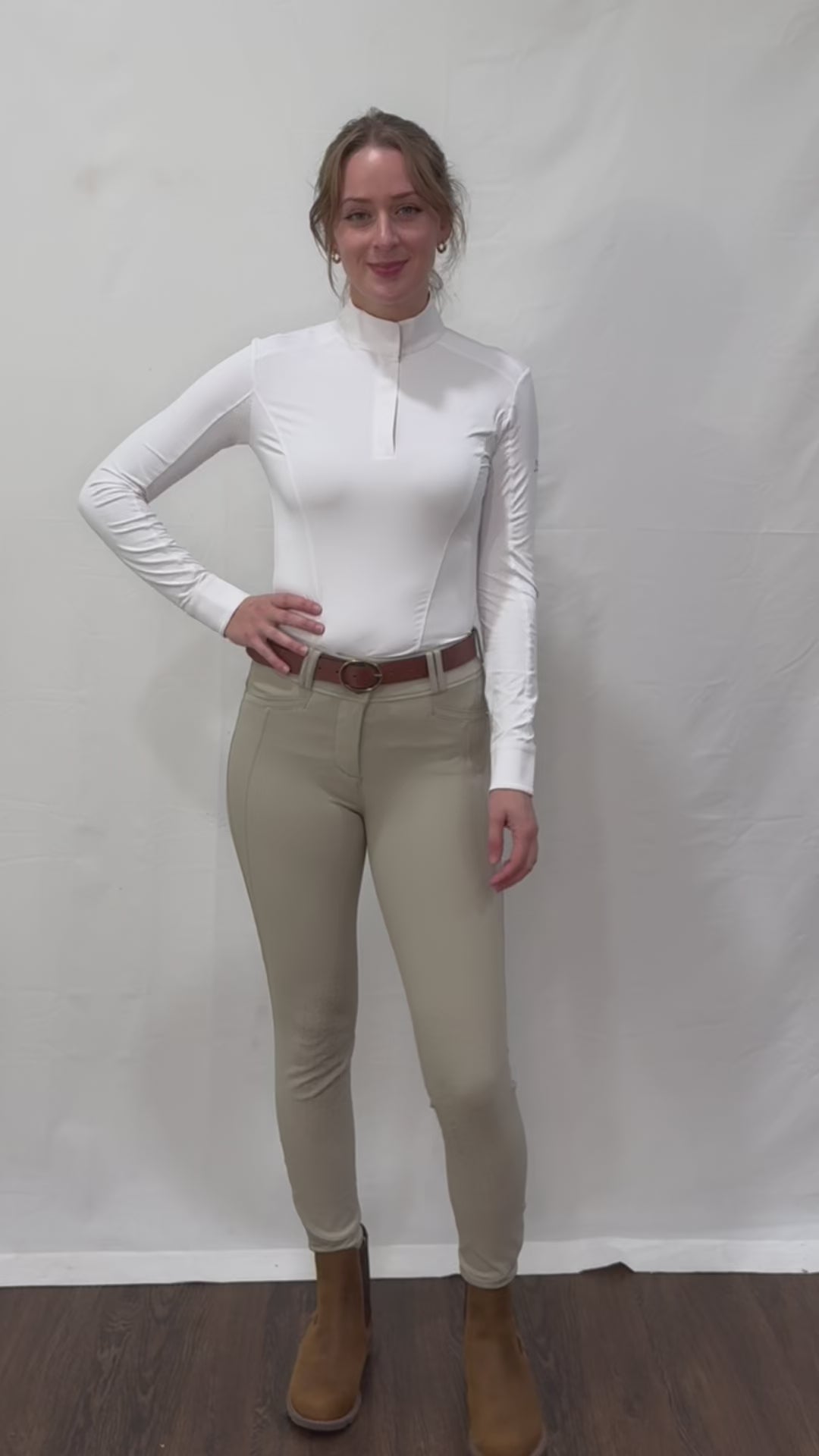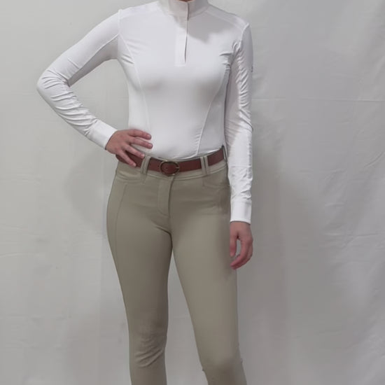 The Tori is a classic long sleeve show shirt designed to elevate both style and performance in the show ring. Made with R.J. Classics silky, cooling fabric. Features a sporty seam lines, perforated detailing, and subtle logo details that create the perfect blend of traditional and modern styling. R.J. riders will feel comfortable and confident every time they walk into the show ring.