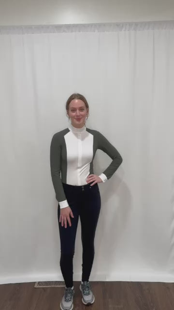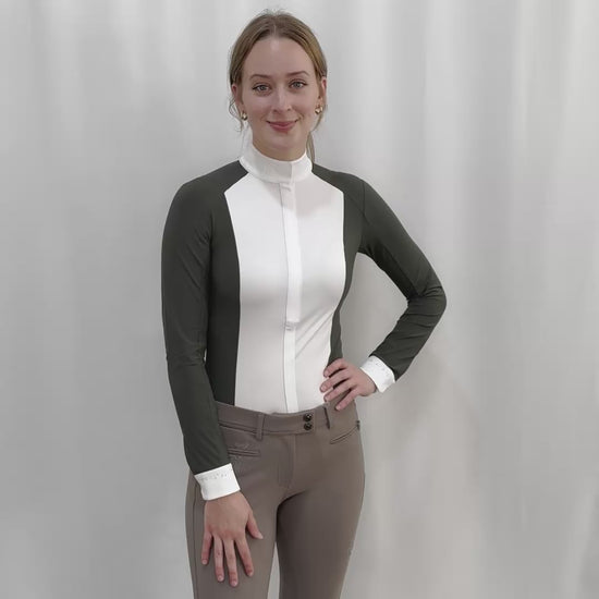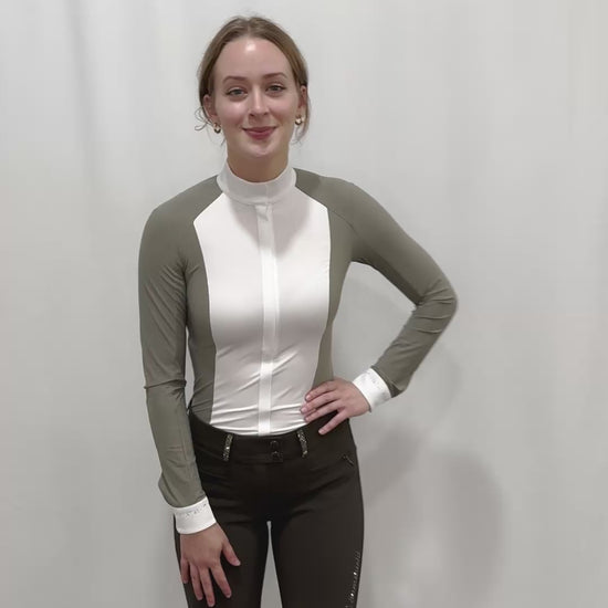 Lucia Sport women's long-sleeved equestrian competition top. Designed for riders looking for timeless style in a technical top.