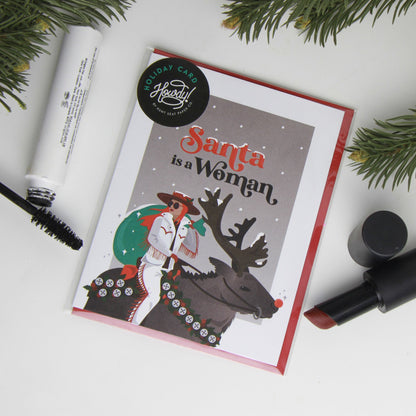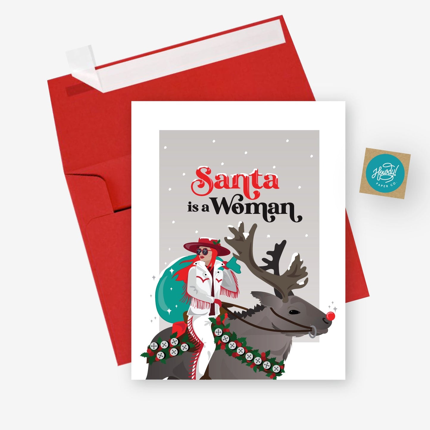 Everyone knows Santa is a woman. Women bring the holidays alive with festive cheer and work their butts off to make every holiday special. So cheers to you, my fellow women. Let's make this the best Christmas yet! Holiday card for cowgirls