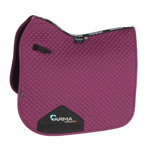 Stand out with the ARMA cotton finish Dressage saddlecloth, smart enough for competing or for everyday use. Breathable stay-smart anti-pill 100% cotton outer. Ultra Dri-Zone lining instantly wicks sweat from the horse to reduce the risk of rubbing and increase comfort. Vibrant color range. Girth guides and elasticated D-ring straps for convenient security. Hardwearing girth guards. Contoured shape for good clearance.