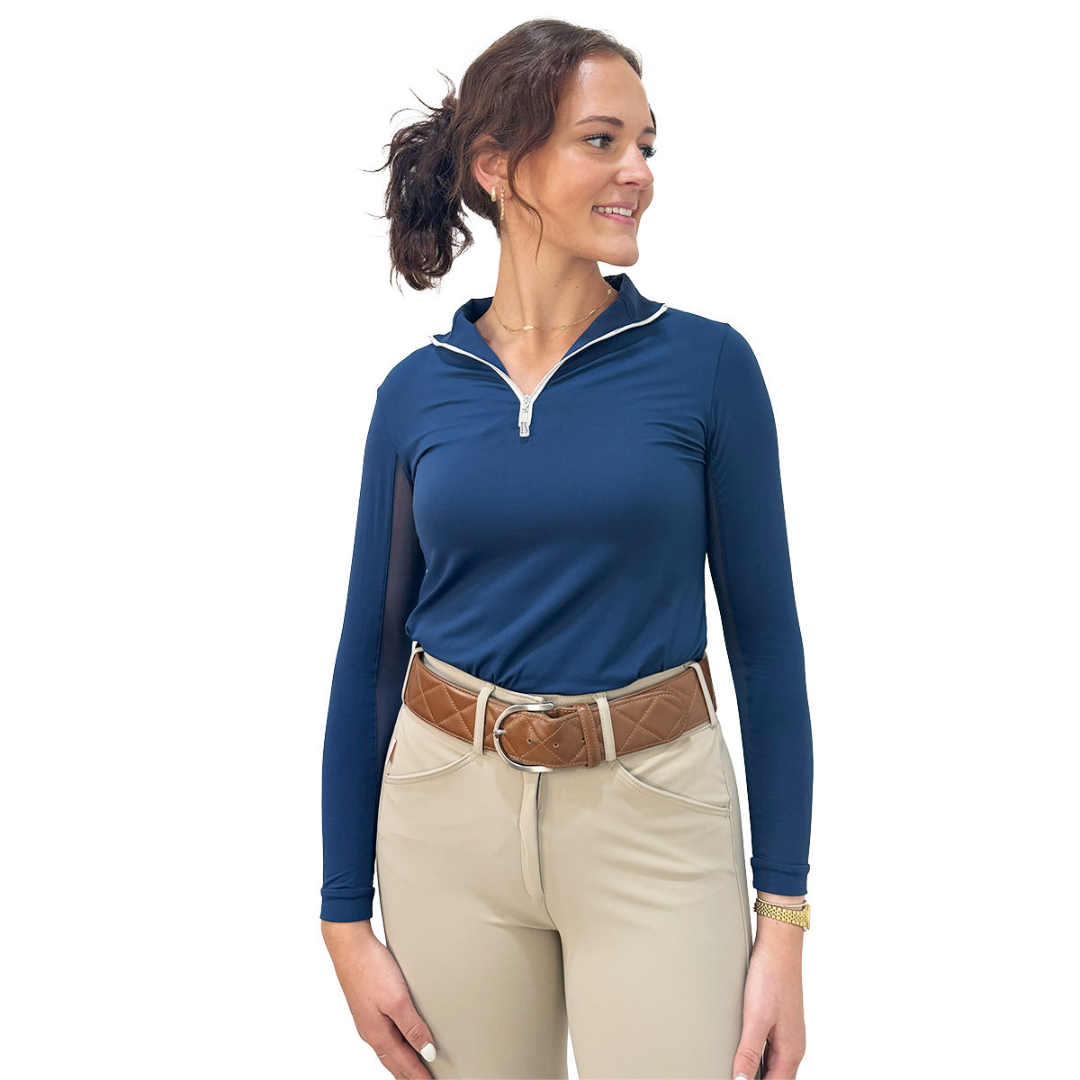 Long sleeves and a high neck keep your skin protected from the sun's harmful rays, while mesh panels under your arms help keep you cool.
