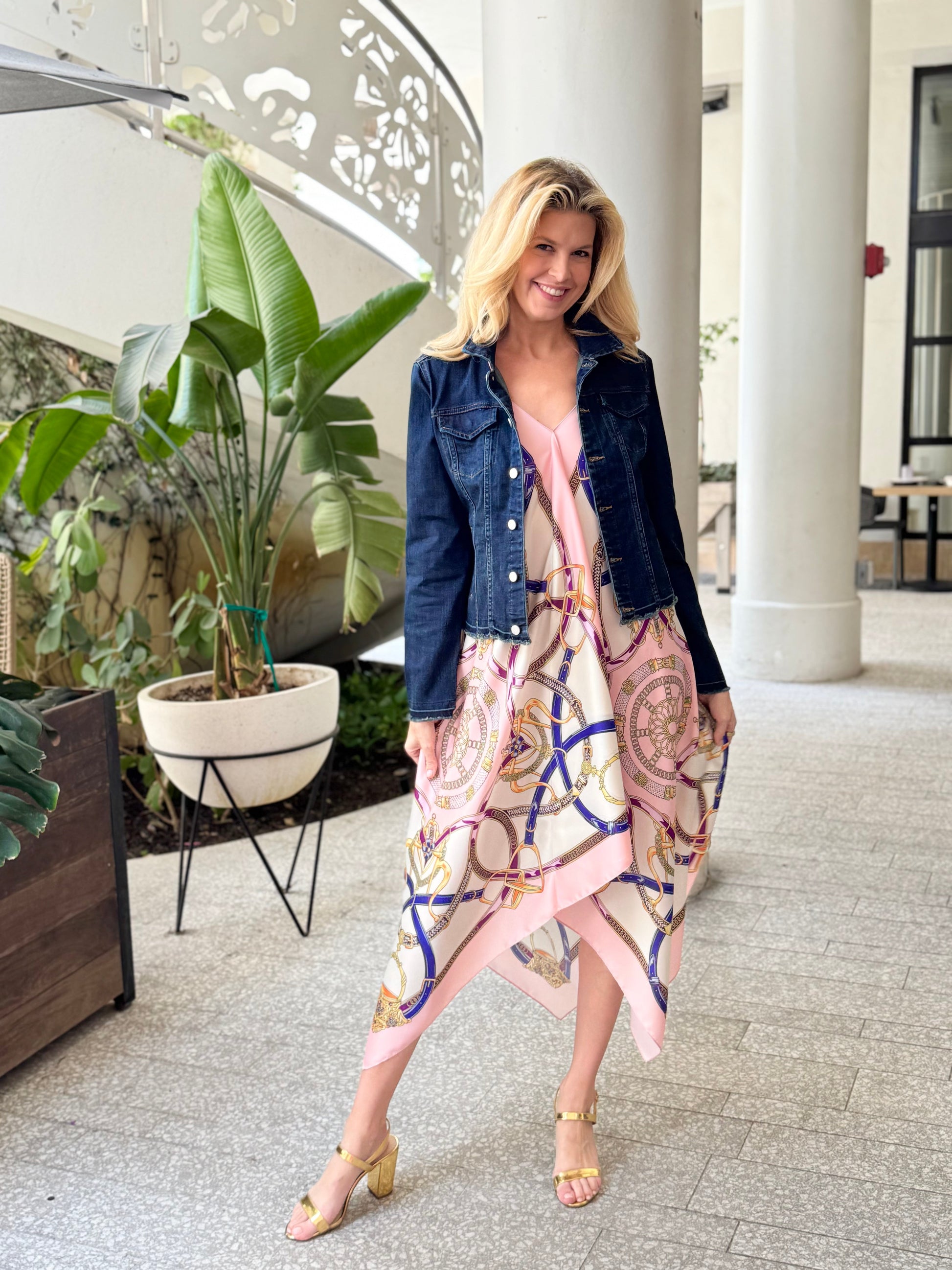 We love this Dark Denim Jacket with Purple Stirrup design for its perfect blend of style and comfort. Designed with a lightweight, stretchy fabric, it moves with you while maintaining a classic denim look. Its versatile design pairs effortlessly with any outfit, making it a wardrobe essential. Easy to care for, it’s machine washable and best hung to dry. True to size, this jacket promises a flattering fit without sacrificing comfort. Experience your new favorite denim jacket today.