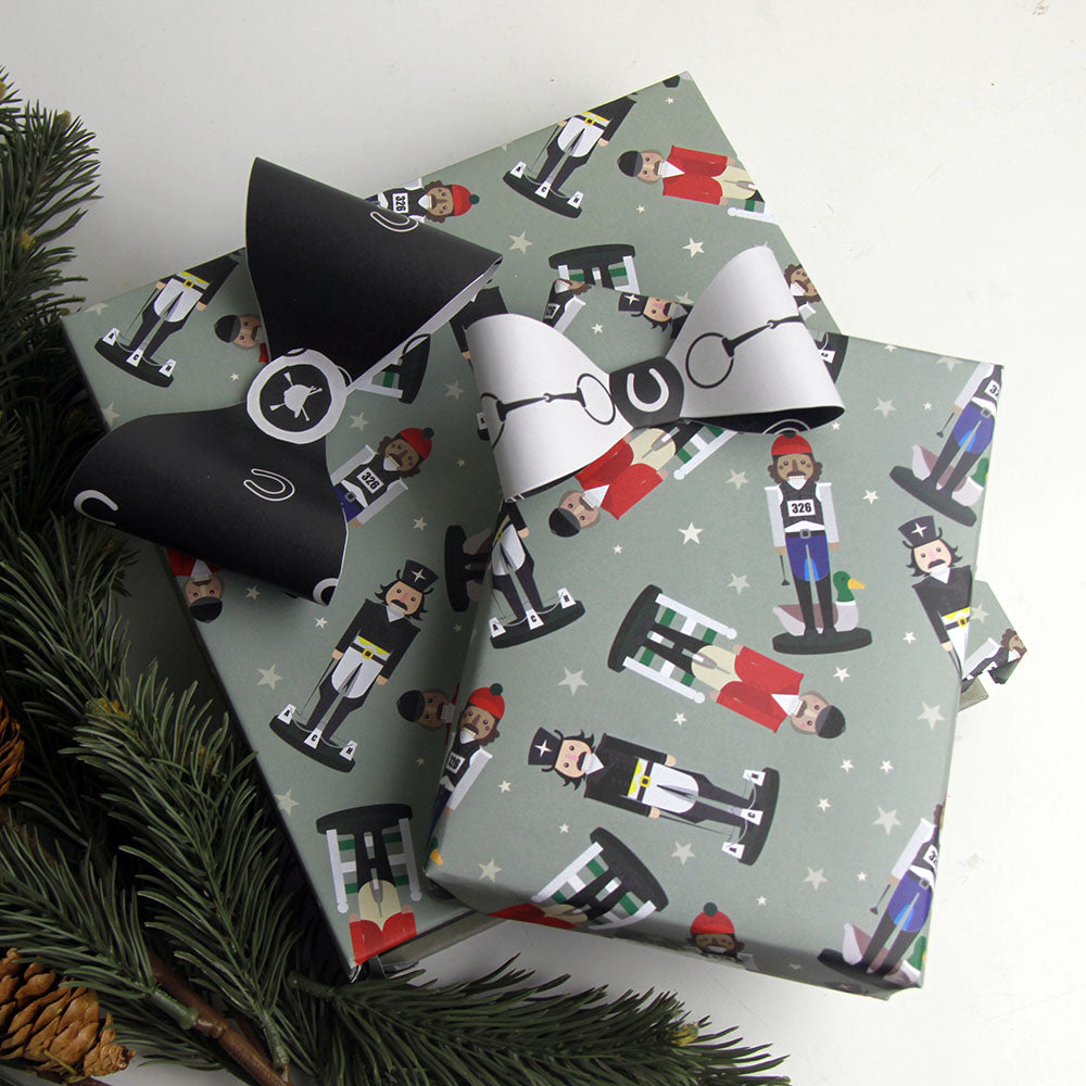The classic holiday nutcracker...equestrian style. The Three (Ring) Wisemen are ready to help you wrap you holiday gifts like a true equestrian (or for the Olympic Games!) with a Show Jumper, Dressage and Cross Country Nutcracker. Get crafty with it! Paper can also be used for scrapbooking, journaling, wall coverings, drawer linings, and art projects.