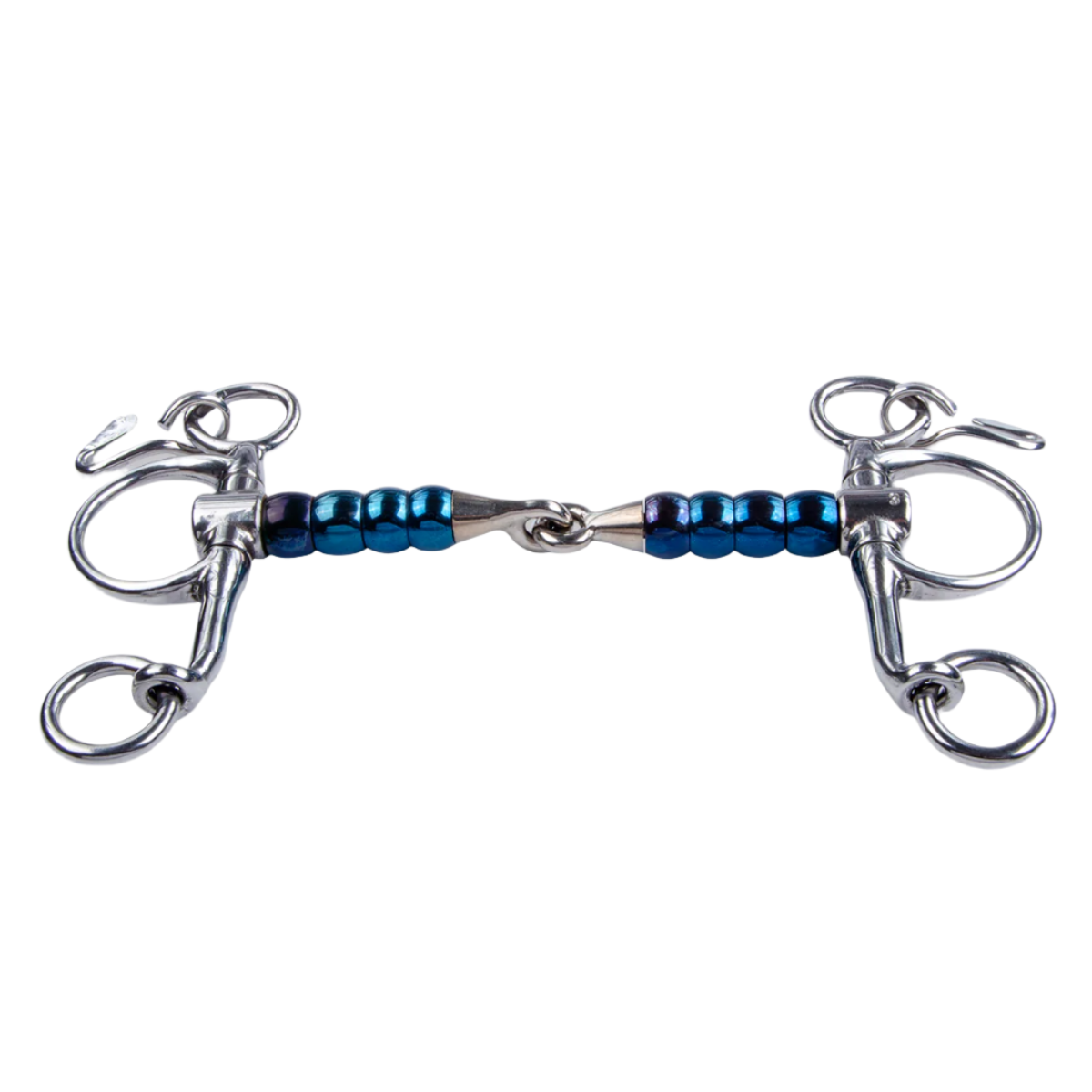 The cherry roller mouthpiece consists of loose rolls. These rolls discourage the horse from grabbing the bit. In addition, it can increase tongue activity, causing more saliva to be produced and the jaws more relaxed. This bit is suitable for horses that are hard in the mouth, grip the bit or have difficulty concentrating.