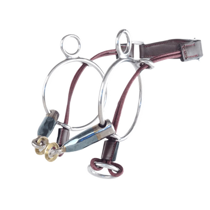 A curb gag is similar to a gag but has a different effect. The pressure will now not be behind the ears but on the lower jaw/chin. The cord runs under the chin and the cheekpieces are attached to the extra ring at the top. This bit is effective for strong, hot horses and is mainly used by show jumping riders. This bit is not suitable for inexperienced riders.