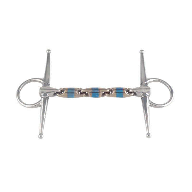 The full cheek has two transverse bars on the jaw piece. This shape creates more pressure on the horse's cheeks. This makes a horse easier to maneuver and a bit cannot be pulled through the mouth as easily. In addition, this bit is quiet and stable in the mouth. The full cheek is ideal for young horses due to the pressure distribution or spirited horses to prevent the bit from being pulled through the mouth.