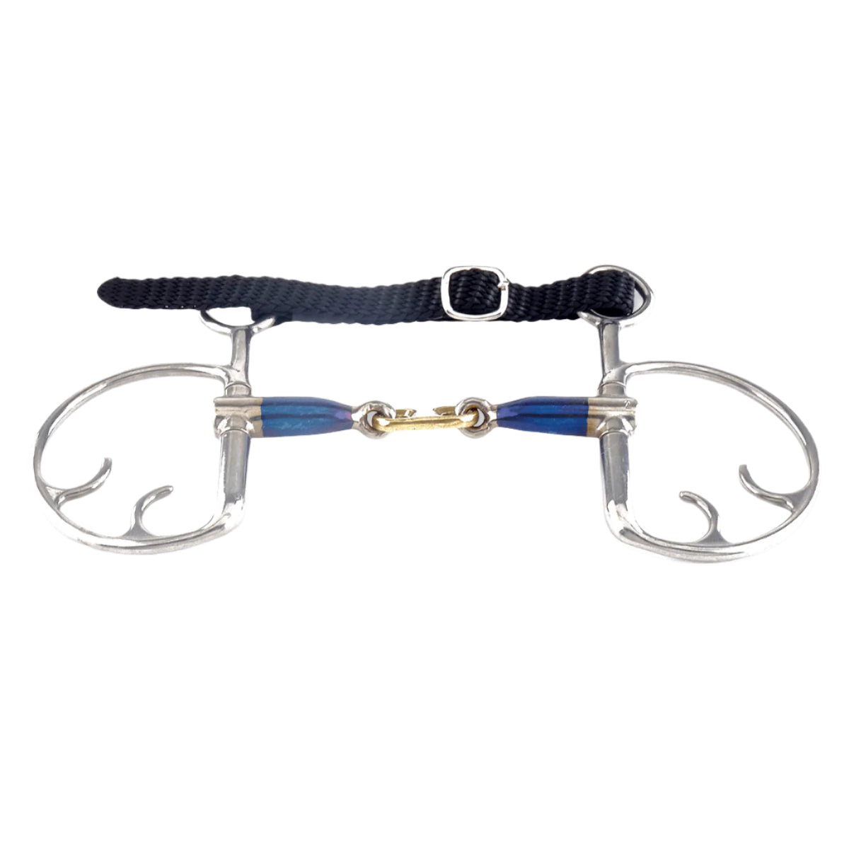 This bit finds its origin in the driving sport but is also popular with show jumpers. A Kimblehook is a bit that belongs to the category of the Pelhams, but only one rein is used. The effect of a Kimblehook is softer than a pelham. The lower the rein is placed, the sharper this bit will be. The effect is bigger when used in combination with a curb chain.