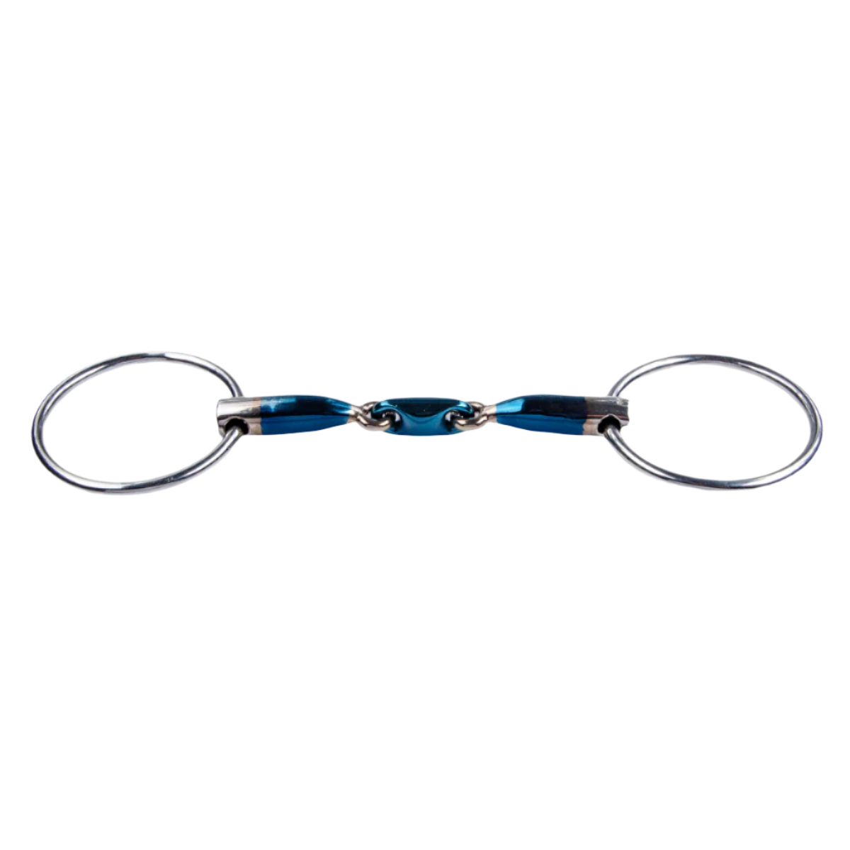 The snaffle bit is a standard jaw piece. This jaw piece has loose rings which allow the bit to move more freely in the mouth, so many horses accept this bit well. Because the rings move freely, aids come through less directly than with, for example, a snaffle bit. To prevent skins from getting between the moving rings, it is recommended to provide the bit with bit rings.