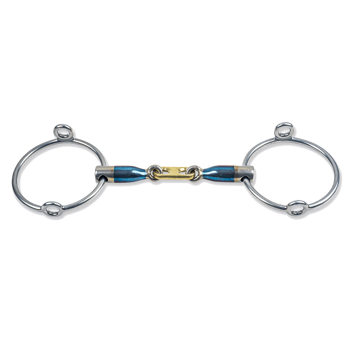 The Dr Bristol mouthpiece is a double jointed mouthpiece with a flat intermediate piece. During relaxation, this insert lies flat on the tongue and applies light pressure. When the horse touches the bit with the tongue and threatens to take control, the intermediate piece tilts, causing the bit to have a sharp effect on the tongue. *This bit is not suitable for the inexperienced rider.