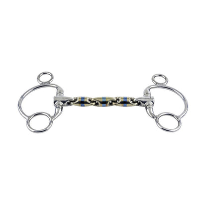 The Waterford mouthpiece is composed of rounded links designed to form to the horse's mouth, applying an even pressure. Its flexible design allows for movement in all directions, making it a challenge for the horse to lean on the bit, ensuring the rider maintains control. While gentle for riders with a light touch, inexperienced riders should avoid using this bit. Additionally, in the hands of a strong rider, the Waterford mouthpiece can have a sharper effect.