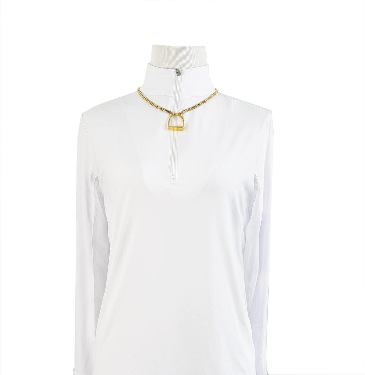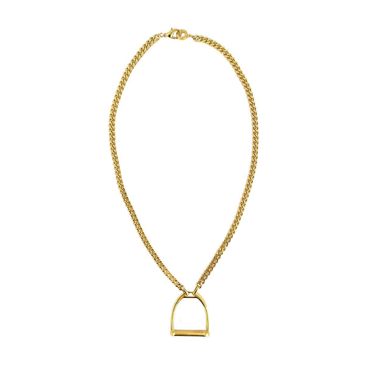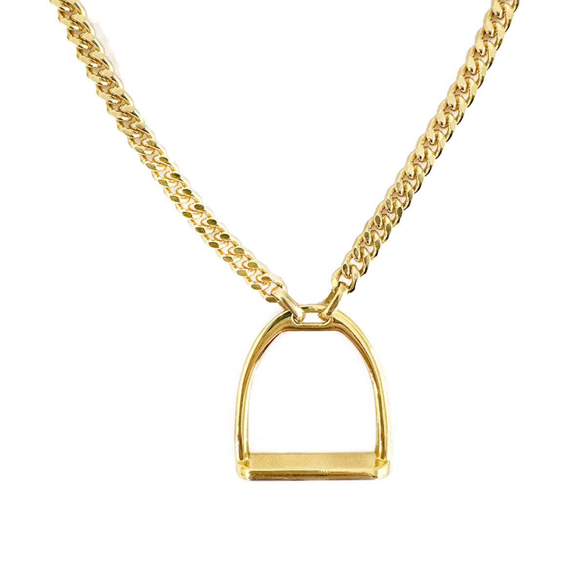 V2 Designs Gold Tone Flat Cuban Link Stirrup Necklace