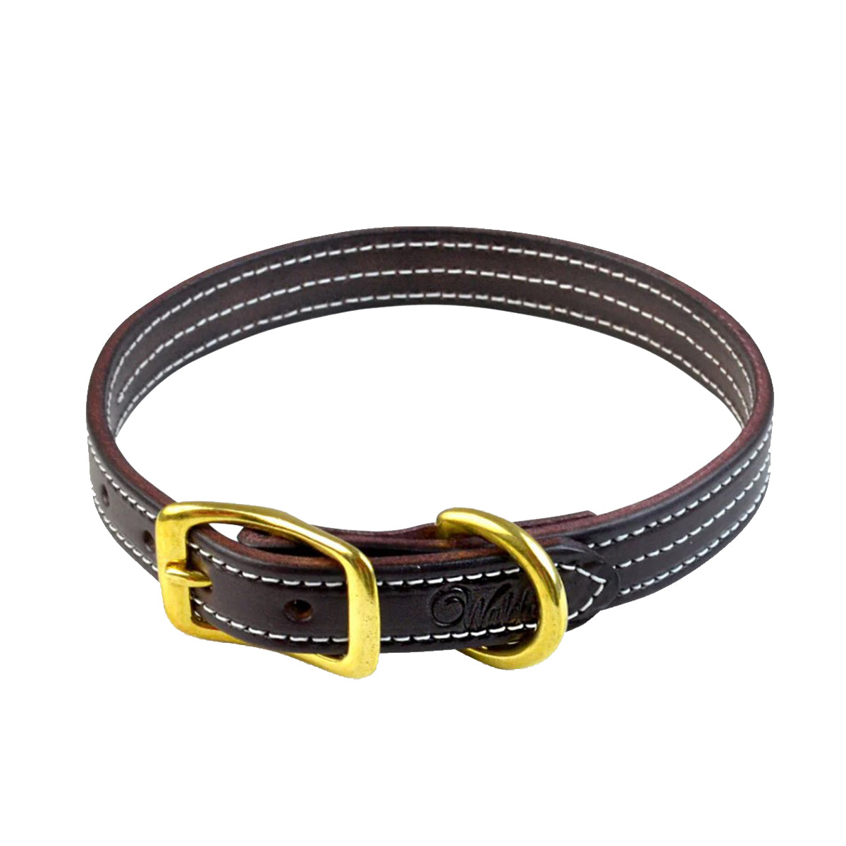 The timeless look of our British Halter in a classic dog collar. High quality triple stitching not only provides style but gives the collar great durability. Made with English Bridle Leather and comes in Havana with Solid Brass hardware.